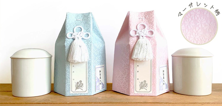 骨つぼを優しく包むような巾着風。可愛いと人気の骨袋です。